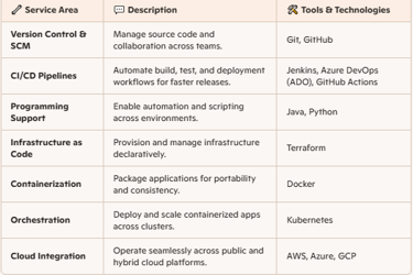 EUROMOX’s full-spectrum DevOps capabilities, designed to accelerate software delivery and infrastructure agility. We integrate tools like Git/GitHub, Jenkins, and Azure DevOps to automate CI/CD pipelines across Java and Python environments. Using Terraform, Docker, and Kubernetes, we enable scalable infrastructure provisioning and container orchestration. Our DevOps workflows are cloud-native, supporting seamless deployment across AWS, Azure, and GCP. Whether you're building microservices or modernizing legacy systems, EUROMOX ensures your development lifecycle is fast, consistent, and resilient.