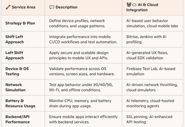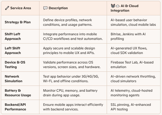 EUROMOX secures mobile performance across devices and networks. We test UX fluidity, backend latency, and resource consumption. Shift Left integrates performance into mobile CI/CD workflows. Left Shift ensures scalable design across OS versions and screen sizes. AI simulates user behavior and network variability for deeper insights. Battery, CPU, and memory usage are monitored in real time. Cloud mobile labs enable cross-platform, scalable testing. Encrypted communication and secure APIs are validated under load. Dashboards provide visibility into mobile performance KPIs. Your apps stay responsive, efficient, and user-trust ready.