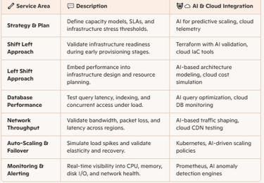 Our process begins with a tailored Performance Testing Strategy & Plan, aligned to business goals, user expectations, and technical architecture. By applying both Shift Left and Left Shift approaches, we embed performance early—starting from design and flowing through development, CI/CD, and deployment. This proactive methodology reduces bottlenecks, accelerates delivery, and minimizes costly rework.