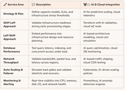 EUROMOX validates infrastructure for speed, resilience, and elasticity. We test databases, APIs, and networks under stress and concurrency. Shift Left embeds performance into provisioning and IaC workflows. Left Shift applies capacity planning and scalable architecture modeling. AI predicts scaling needs and detects anomalies across environments. Cloud platforms enable auto-scaling, failover, and burst testing. Real-time telemetry tracks CPU, memory, and I/O health. Multi-region simulations validate global infrastructure readiness. Dashboards offer actionable insights for system optimization. Your backend stays strong—no matter the load.